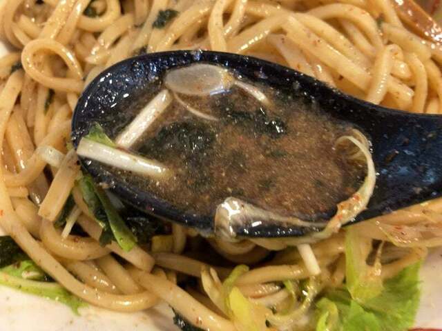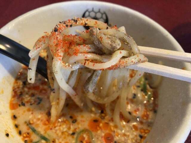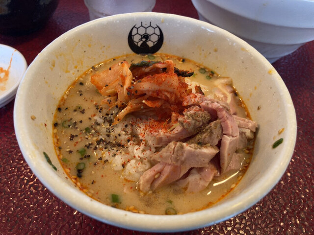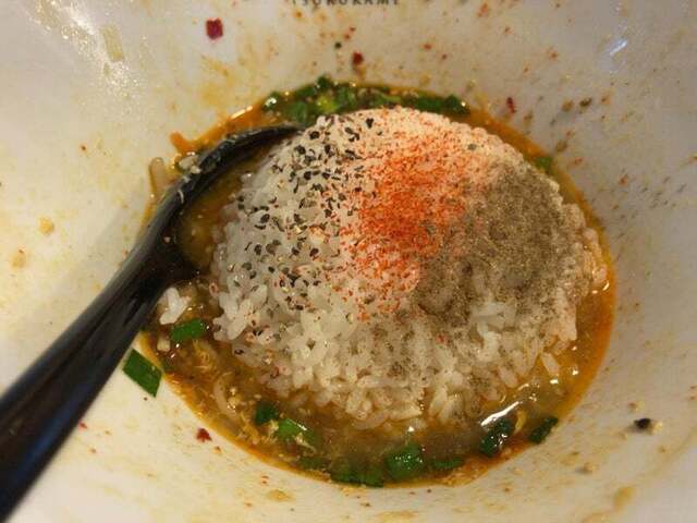 途中で、卓上の一味唐辛子、ブラックペッパー、山椒を投入すると、それぞれの持つ風味が引き立って、味変大成功~!