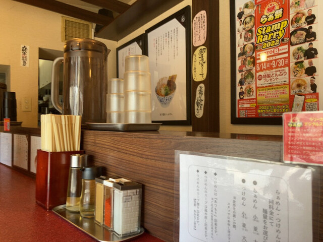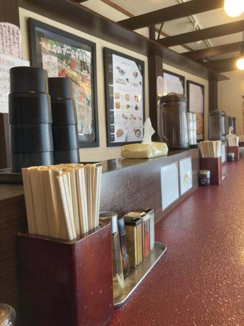 店主に食券を渡してから、仕切り板が設置されたカウンター席に座ります。