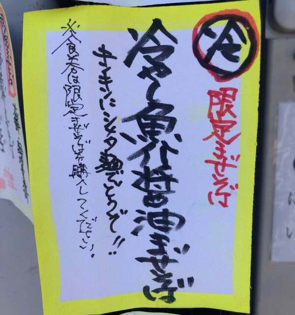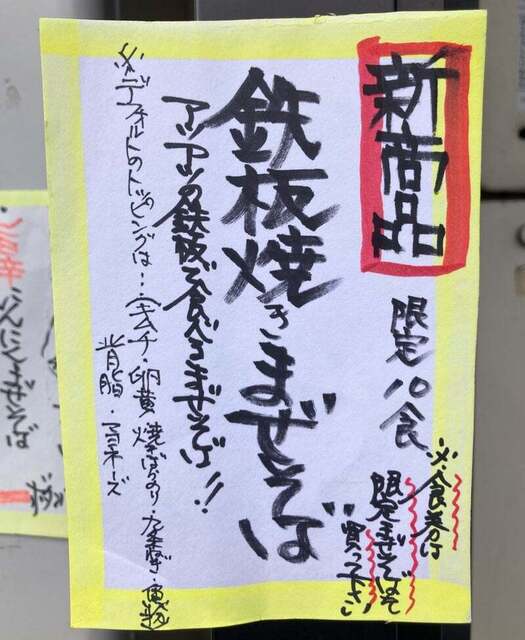 入店する前に、まずは店前の券売機の横を確認すると、お目当ての「限定まぜそば」は、『鉄板焼きまぜそば(限定10食)』でございます。