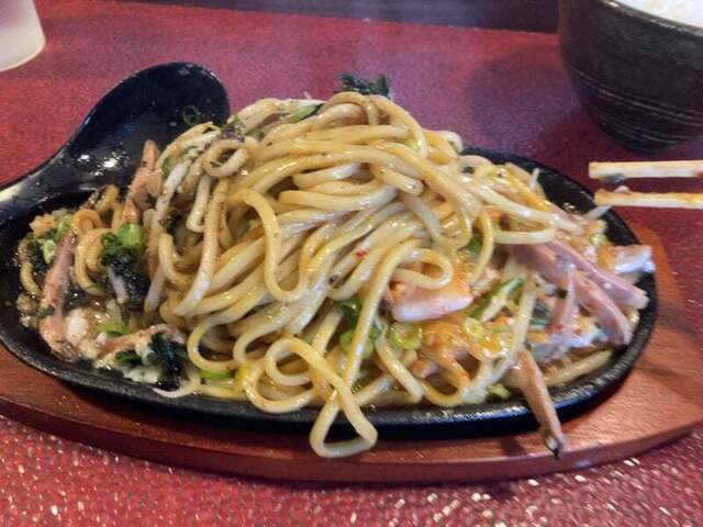 外にまで出てきてた蒸気は、茹でたての麺を熱々の鉄板に乗せた時に発生していたみたい。店内でも同じ状況が見られましたよ。
