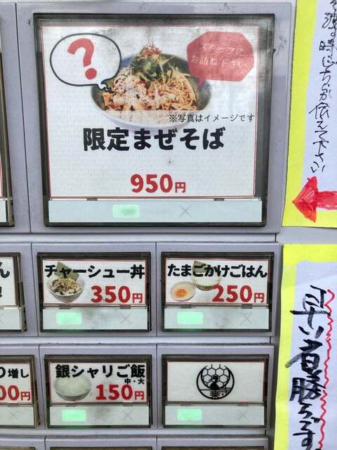 というわけで、さっそく券売機右上『限定まぜそば(950円)』の食券ボタンをポチッとな!