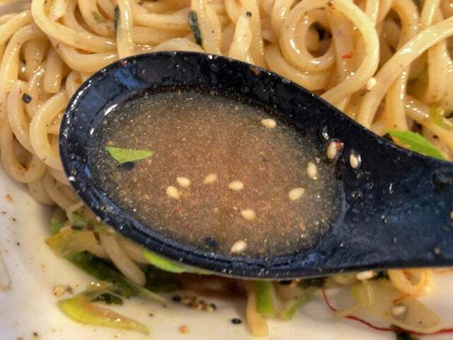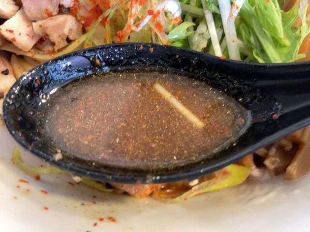 呪文を唱えたらもう一度ヒンヤリンコな魚介醤油ダレをいただくと、魚粉のせいかほんのり甘みが加わり、さらに特製ニンニク、アオサ海苔、白黒ゴマの風味も加わって、めっちゃイイ感じ!
