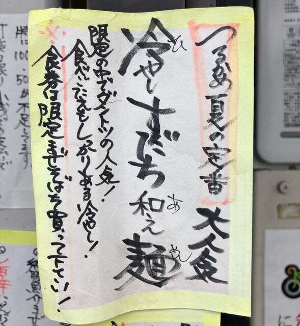 あれ!?券売機を確認すると『冷やしすだち和え麺』の立て看板もポップも無くなってる...