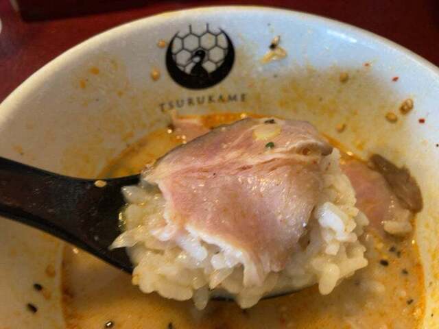 麺を食べ終えるといい具合で、魚介醤油ダレとトッピング類が残ってくれています!