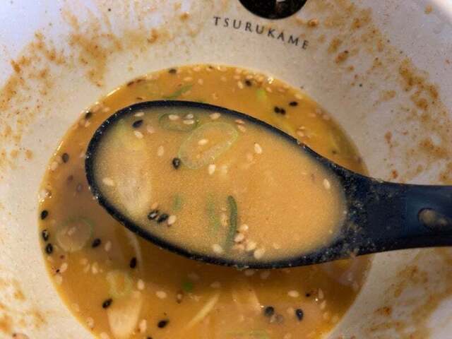 麺を食べ終えたら、特製魚介出汁でスープ割りにしてくれたので一口いただくと、魚介出汁の風味と旨みがより強くなり、これがカレー担々つけ汁との相性抜群で、めっちゃまいう~!