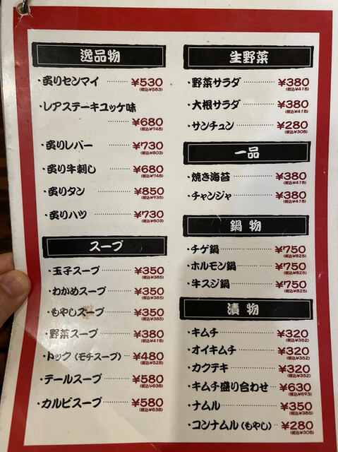 カルビは永遠の焼き肉の定番ですね。赤身と脂身のバランスがとてもいい。適度にサシが入っているカルビを薄切りにして頂いています。炭火の上でサッと炙って頂くと美味しい。