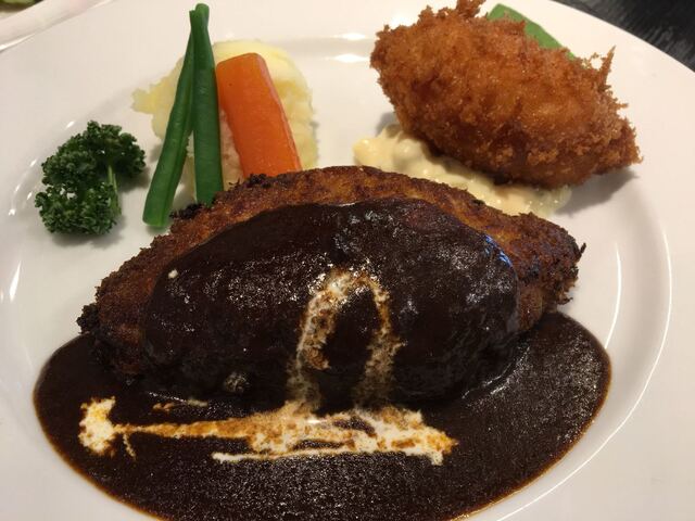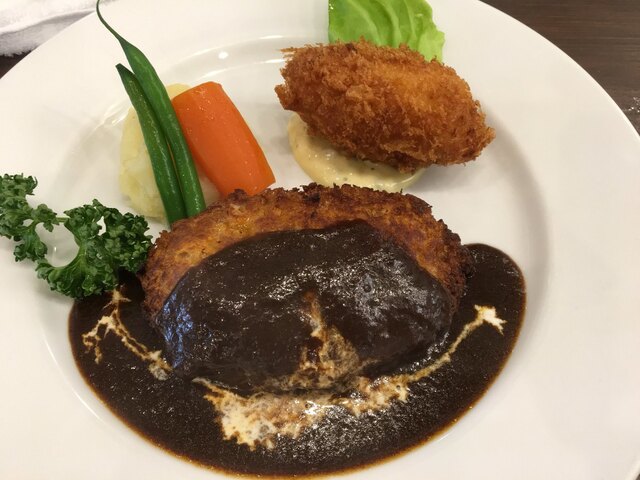 ハンバーグとカニクリームコロッケ ドミグラスソースが最高です!