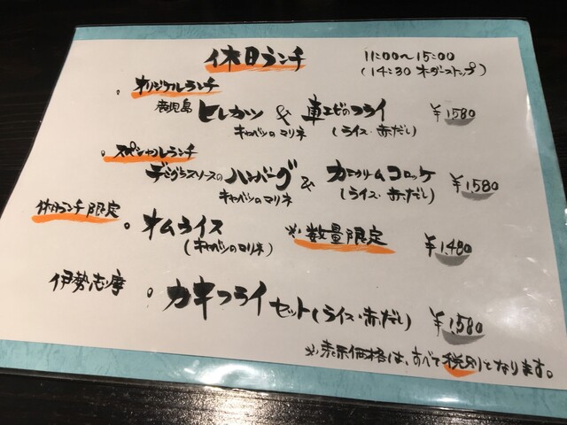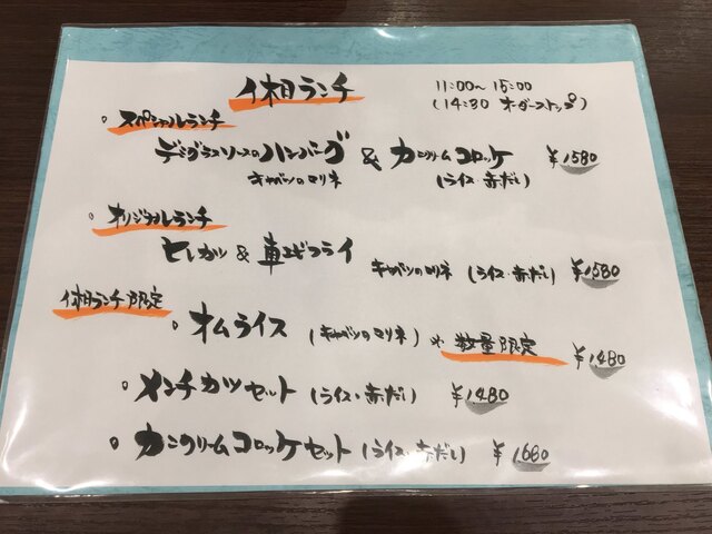 土曜の13時20分頃に訪問。昼食のオンタイムを外したとはいえ、まだまだ店内は混んでいました。ギリギリで最後のテーブル席へ。次のお客様はカウンター席でした。さて、さっそくの注文ですが、お願いしたのは次のメニューです。