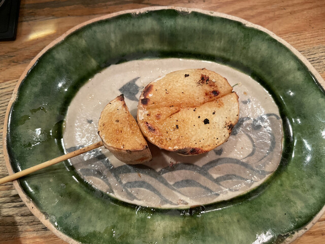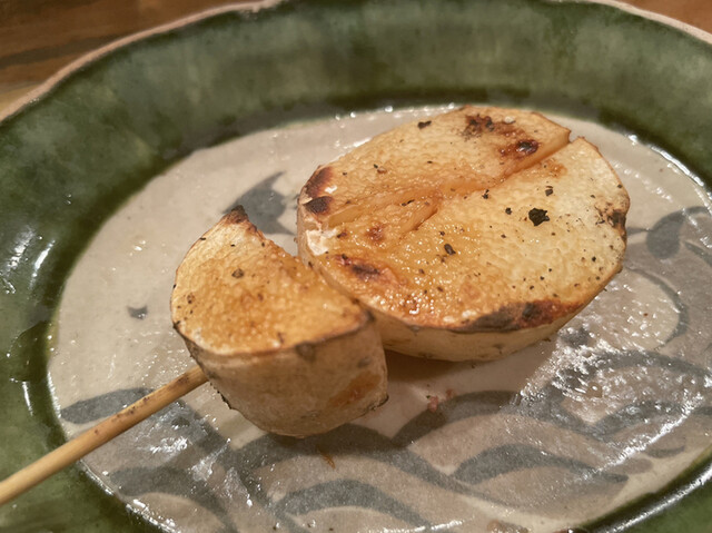 皮付きのまま焼いています。厚めにカットされてゆっくり焼いてあるのでしょうか。内部まで程よく火が通っています。味付けは塩。表面が適度に焦げていて芳ばしさが増幅されています。シャリシャリの食感でとても美味しいです。