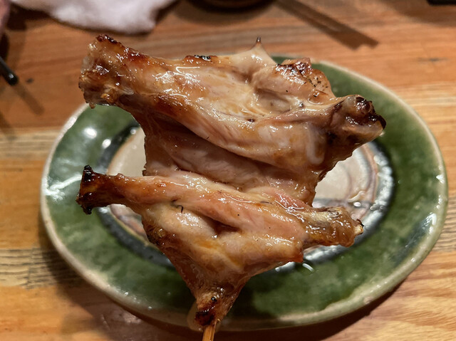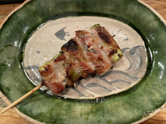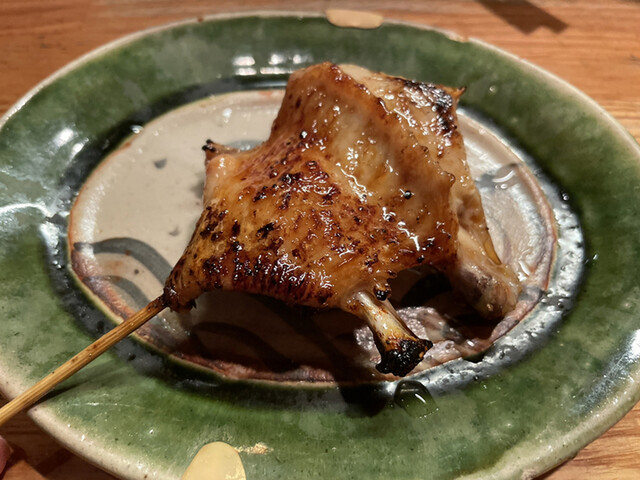 皮はパリパリで身はふっくらの絶妙な焼き具合。味付けは塩とシンプルです。先の鶏肉がボリューミーで皮のカリカリの食感が印象的です。ネギは、しっかりと焦げて芳ばしさが漂い、味に対してもお焦げの苦味がプラスされてバランスが良い美味しさでした。