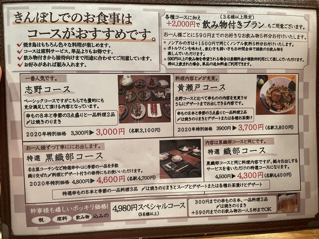 志野コース(税込 3,410円)評価=◎:きんぼし焼き