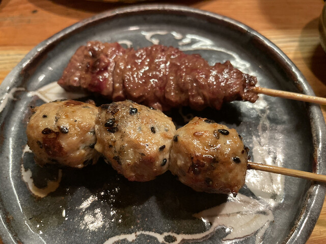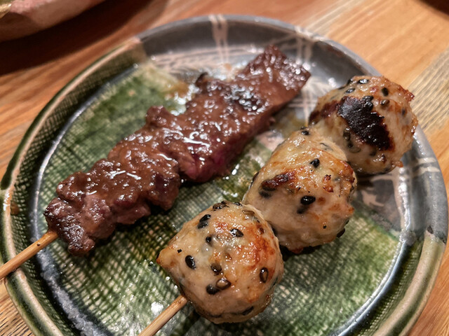 左:つくね(コース内)評価=○、右:きんぼし焼き(コース内)評価=◎