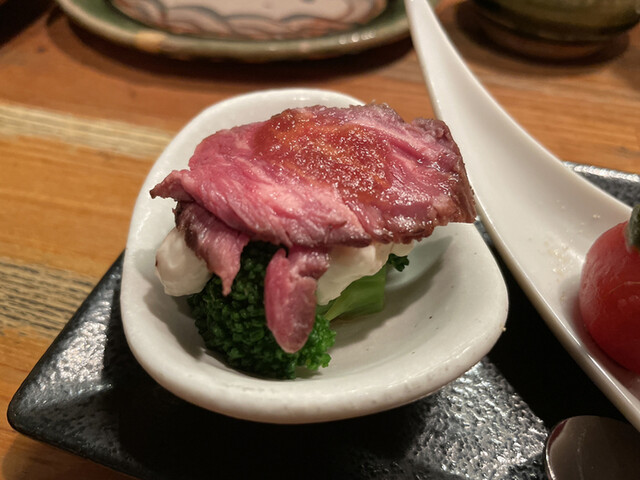 牛のハラミです。味噌生姜のタレでアクセントが効いた味わいです。お肉は驚く程、柔らかくて噛めば噛むほど味が染み出てきます。美味しい一品です。