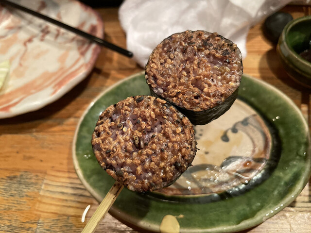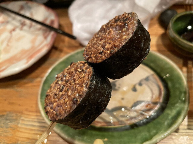 タレが絶妙で美味しい。海苔の香りとツルっとした歯触り、噛んだ時のプチっとした歯応えも◎。ささみ自体の火の通りも完璧で、お肉全体がふっくら膨らんで驚くほどジューシーに仕上がっています。