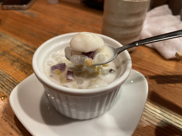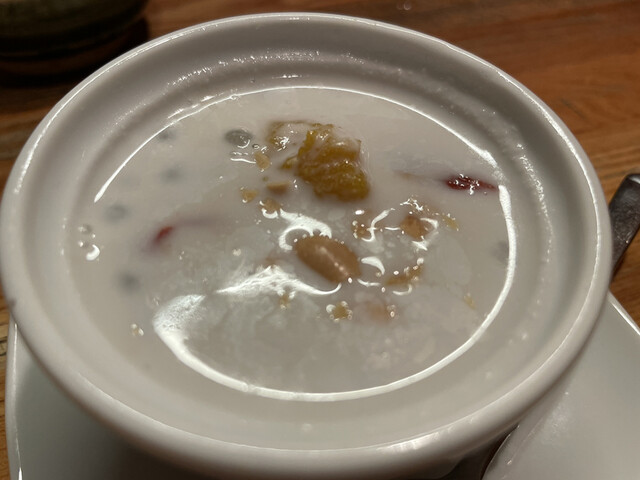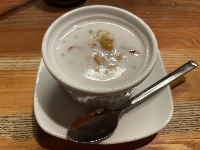 具材は、タピオカ、クコの実、さつまいも、黒豆、クルミ、だんご?です。ココナッツミルクで味付けされてクリーミィ。しっとりとした味わいです。