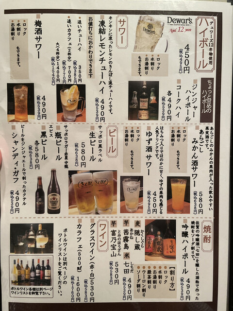 志野コース(税込 3,410円)評価=◎:デュワーズ・ハイボール(税込 429円)評価=◯