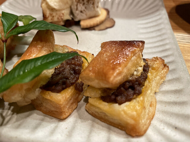 ミートパイはパイがサクサク。お肉は旨味が溢れています。一口サイズなのが嬉しい。