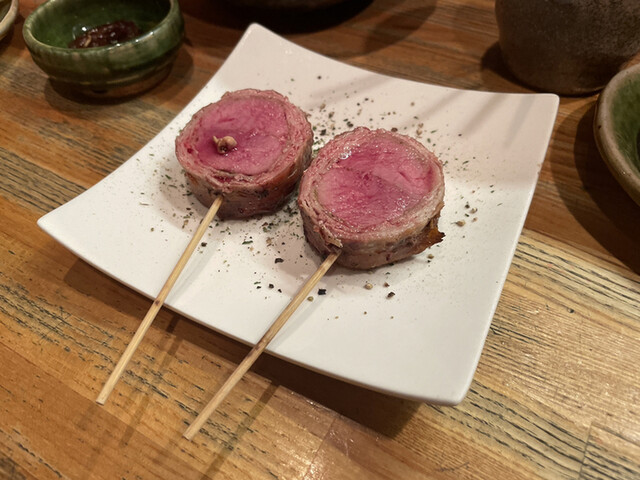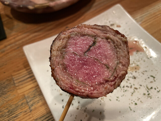 ジューシーで優しい香りがするお肉です。周囲も肉巻きになっていて、肉汁を閉じ込めているようです。ひと噛みすると肉汁があるれてくるのが、とても美味しい。