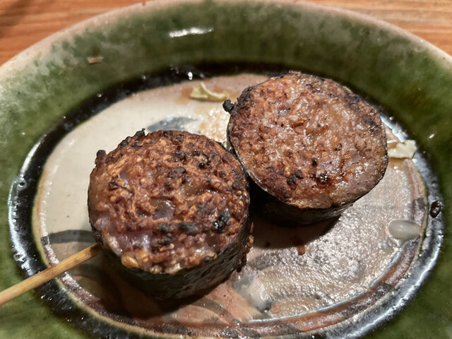 下:つくね(コース内)評価=○、上:きんぼし焼き(コース内)評価=◎