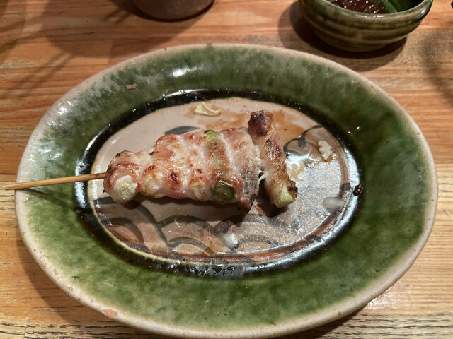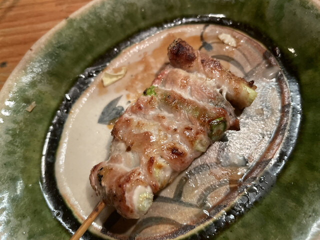 アスパラのコリコリした食感とお肉の旨味が絡まって美味しい。味は塩。お肉が薄いのでアスパラの食感をメインに味わえます。