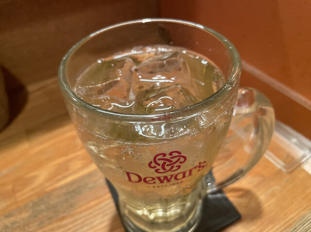 デュワーズでつくるハイボールです。コクがあります。炭酸を強めに効かせてあり、喉にシュワ〜っと来ます。サントリーの角より濃厚な味わいです。