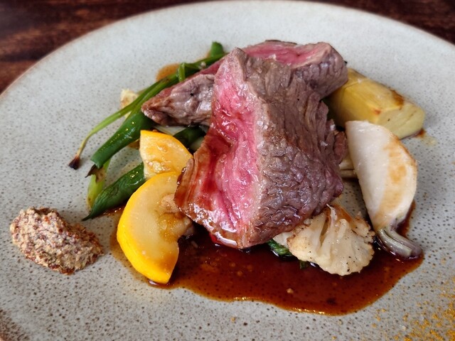 魚は皮目をパリッと焼いて、魚肉はホワッとしている理想の焼き加減。料理上手が焼いた魚である。肉は厚切りをレアで焼いているが、火の通し具合がよく、ソースも美味しい。言うことなしだ。あんまり美味しいので、夜のメニューを見せてもらった。よさげなメニューなので、翌日の元日の夜の予約をお願いしたが、残念ながら満席とのこと。古宇利島は初訪問だが、おそらく古宇利島で一番美味しい店だと思う。ご馳走様でした。