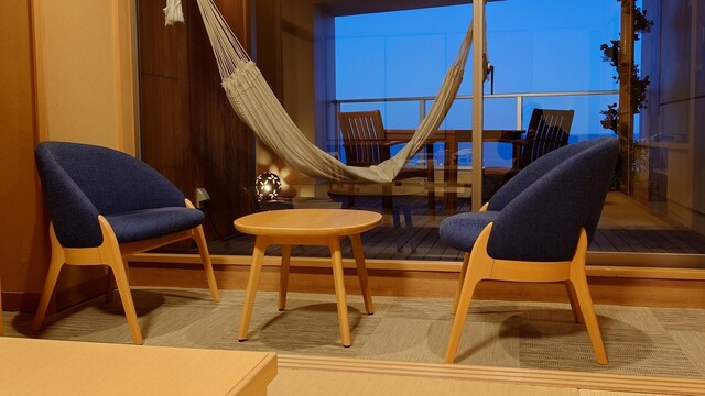 広いテラスにハンモック