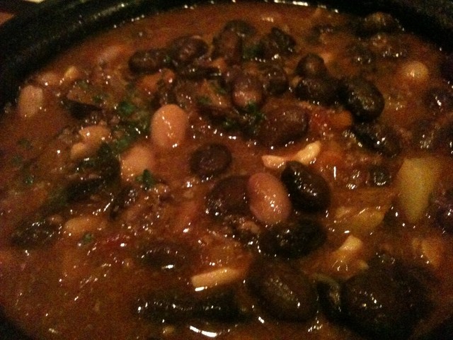 ・豆の煮込み。数種類の豆。雑穀風。挽肉も一杯。コッテリしてお腹にたまる。
