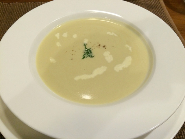 先ずはサラダが凄い。季節物のイチゴなんかついちゃって。酸味の強めのドレッシング。たっぷりの野菜をわしわしいただきます。