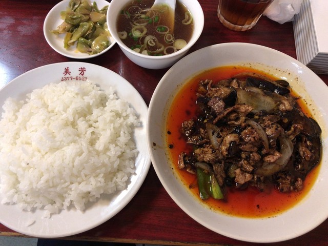 レア感たっぷりのレバ野菜炒め、豆鼓辣油たっぷりの豚肉茄子炒め、などご飯が超ススム君です。洗練さの欠片もないが絵に描いたようなランチもりもり中華。大陸系庶民の食事ができる貴重なお店といえると思います。