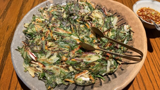 前菜6品、チジミ、石焼ビビンバ、草餅。とても美味しく量もたっぷり。