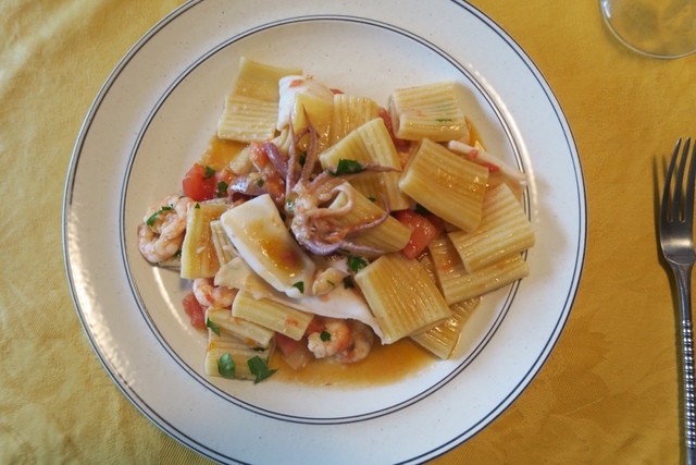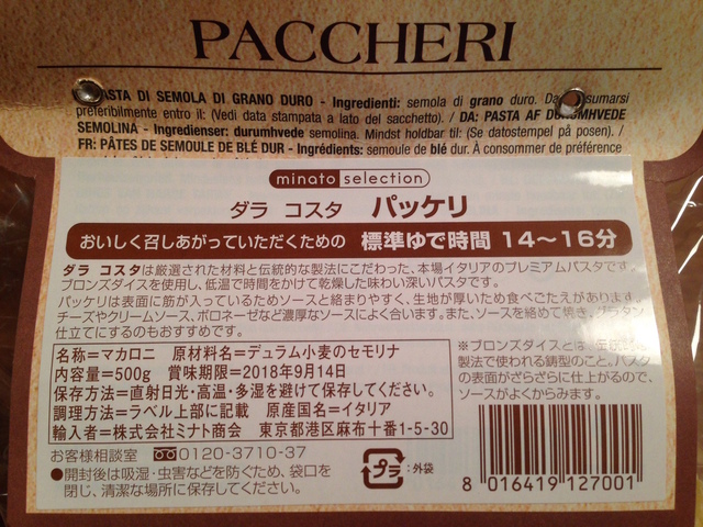 Paccheriは、ロングパスタと異なりナイフとフォークで上手に食べることができますので、右利きの私はとても重宝しています。