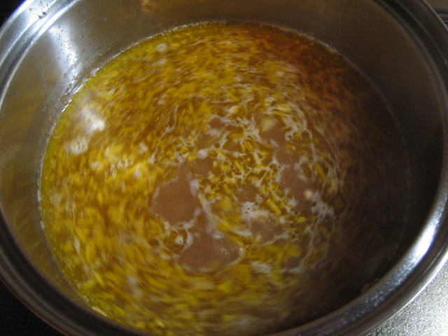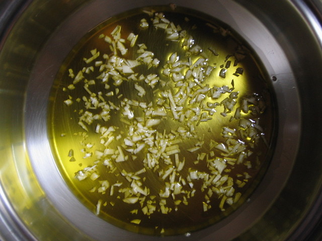 調理のポイントは、大蒜を低温でゆっくり(1時間ぐらい)熱することです。これによりオリーブオイルに旨味が浸透します。決して焦がしてはいけません。イタリア人から教わりました。