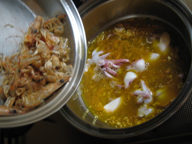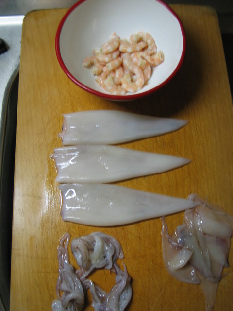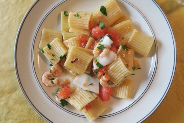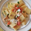 大晦日の昼、女衆がお節料理を作っている隙間を利用して、労うために私が、Paccheri Pescatóre(魚介のパッケリ)を作りました。