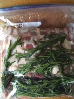 多めに塩と胡椒を振り、今回は生のローズマリーをジプロックに入れて、べに花オイルを注ぎました。爽やかな香りが台所に漂います。
