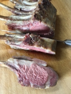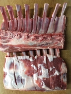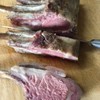 ラムラックから切り離す時は、肋骨を一個飛びに切ると厚肉になります。(写真参照)