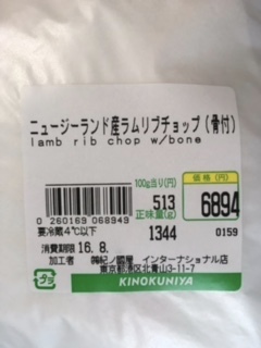 紀ノ国屋 青山で買ったニュージーランド産ラム肉の値段は、@513円×1,344g=6,894円で六人前ですから、1,150円 / 人 です。