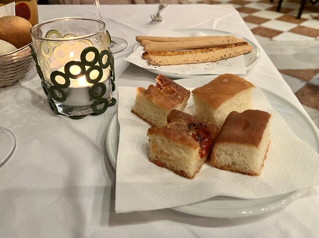 ・COPERTO 5.0EUR フォカッチャとグリッシーニがもの凄く美味しい