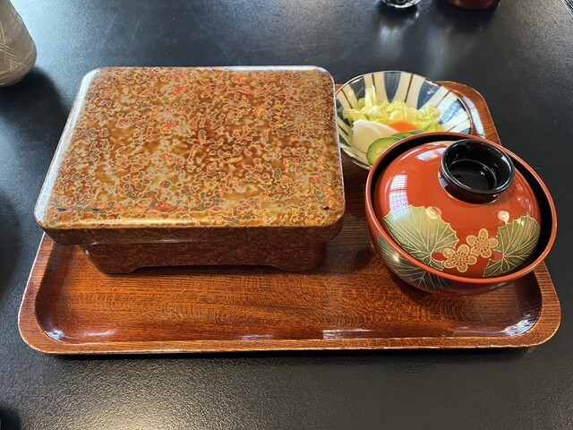 うな重(は) 一串半 5,650円(内税) 天然木に漆塗りの重箱