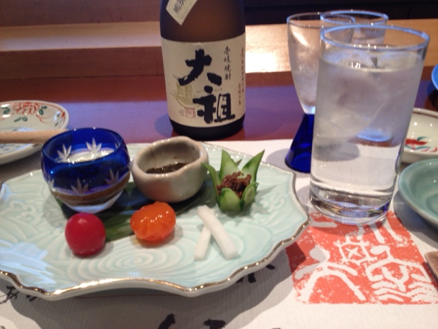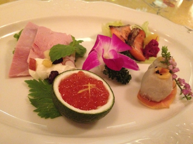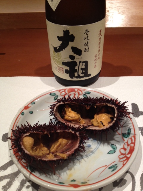 壱岐名産の赤うに・あわび・壱岐牛などなど地の物が次から次へとサーブされます。