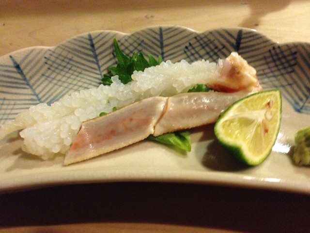 この日の蟹は、一杯@6000円で刺身と焼きとゆでにしてくれました。