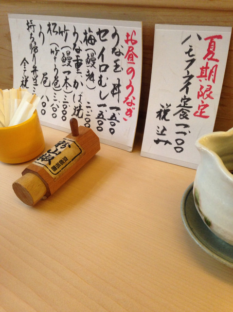 で、うな玉丼を注文しようと思ったら、卓上に季節メニューの鱧フライ定食@1100円に目が止まりました。うな玉丼はグランドメニューなので次回でもよいことにして鱧フライをいただくことにします。