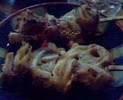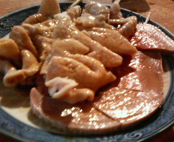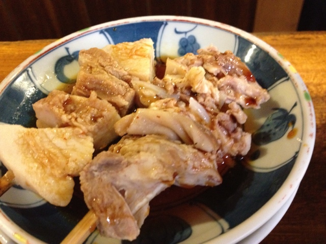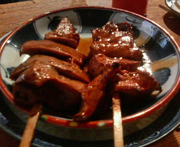 シロとアブラをタレ焼きで。