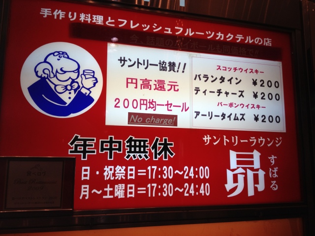 で、一杯200円のウイスキーは確かに200円でした。バランタインとティーチャーズ、そしてバーボンですが、アーリータイムスが200円でした。もちろん、何杯飲んでも200円です。しかも、10杯飲むと確実に倒れるくらいの量です。