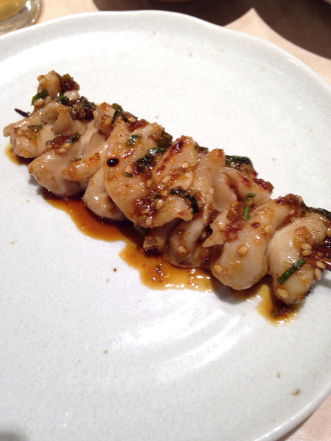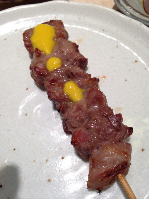 さらに「つくね&生ピーマン」というこのお店最強のメニューをいただきました。肉詰め風にするのがお勧めとのことですので素直に従います。確かにこれはありでしょうね。その後もお好みで串を追加し、一人飲みの割りにはいいお値段でした。