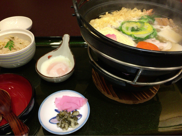 夜の部のデビュー戦になります。うどんすきのコース@5900円でいただきました。