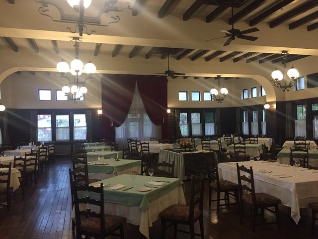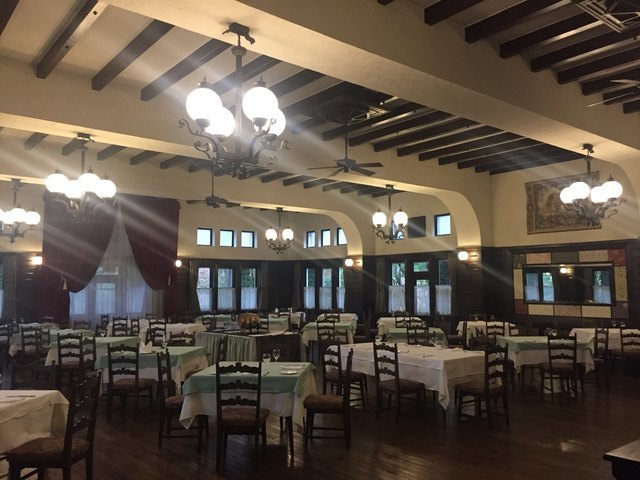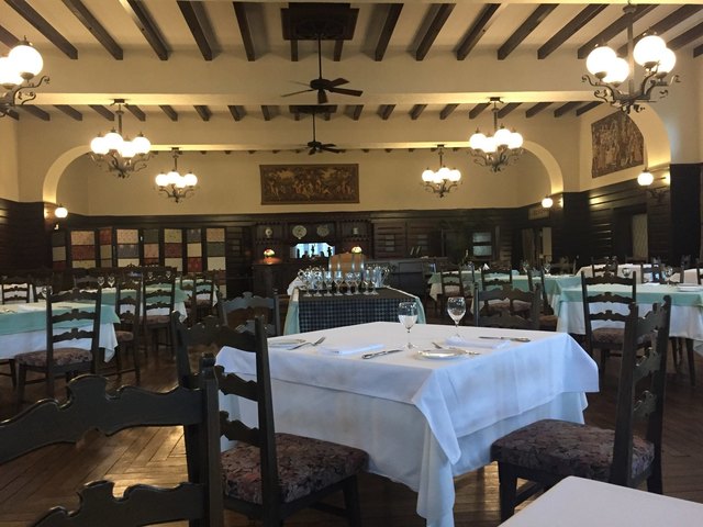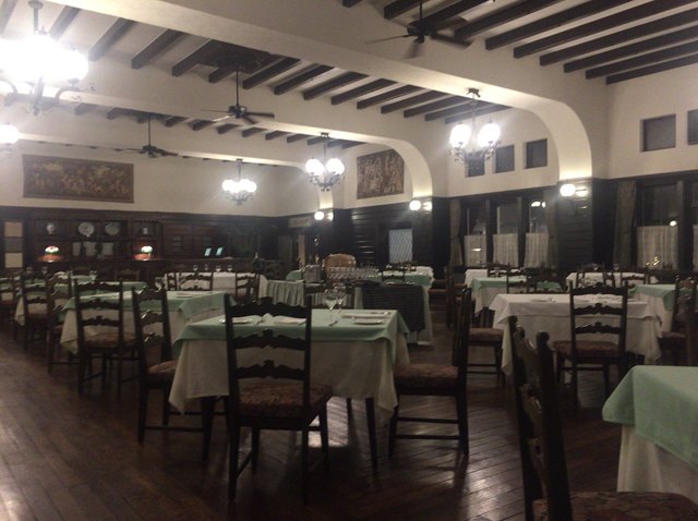 昨夜のディナーから続けて、朝ご飯をこのダイニングルームでいただきます。朝は少し薄暗いうちから起きて、散策してお腹を空かして、7時のオープンを待ちました。