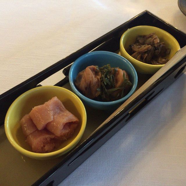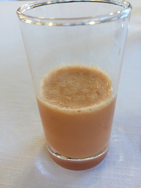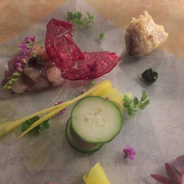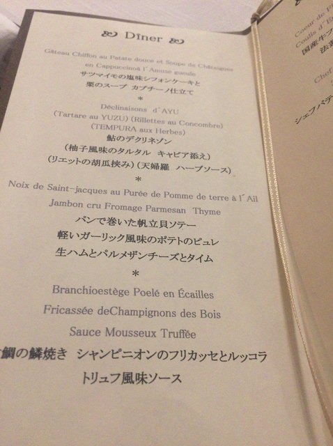ベジタブル&フルーツドリンクから始まります。そして、お盆がドンと出されて、そこにはきっと長崎県の郷土料理が並んでいます。どれもこれも日本人の琴線に触れます。日本人のDNAが刺激されます。焼魚は、かますのような、きっと地元の地魚なのでしょう。