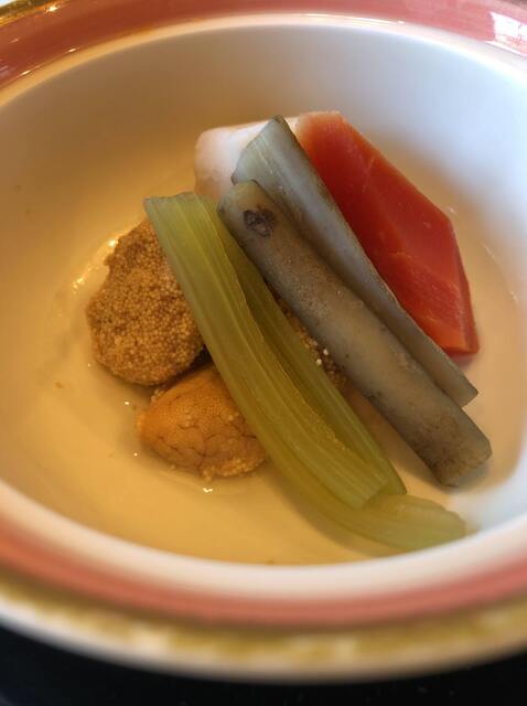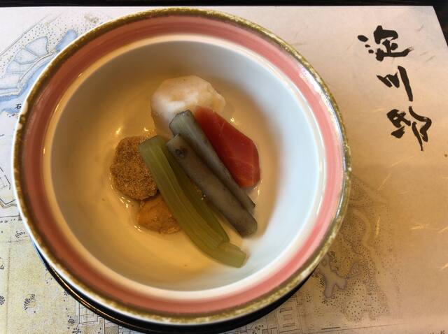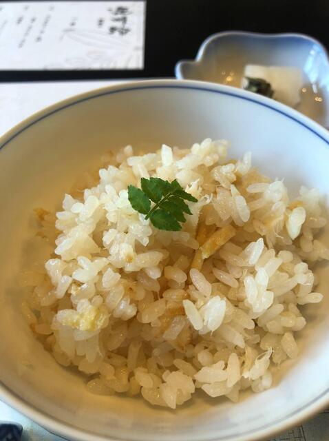 鯛の子が嬉しくてたまらないです。天ぷらは蟹東寺揚げが目を惹きますが、まあコースのお値段からしたら、相応な蟹かと思います。酢の物の蛸のさっぱり感はいいものです。炊き込みご飯はお替りしました。