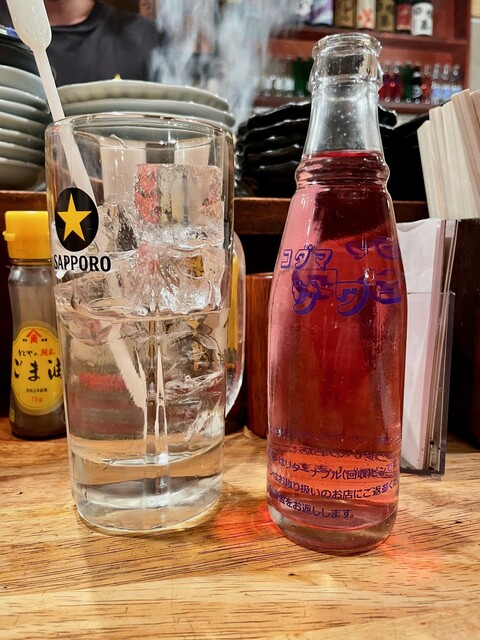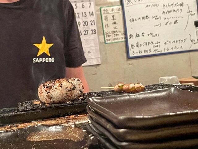 目の前の焼き場から店員さん「お飲みもはなににしましょ?」